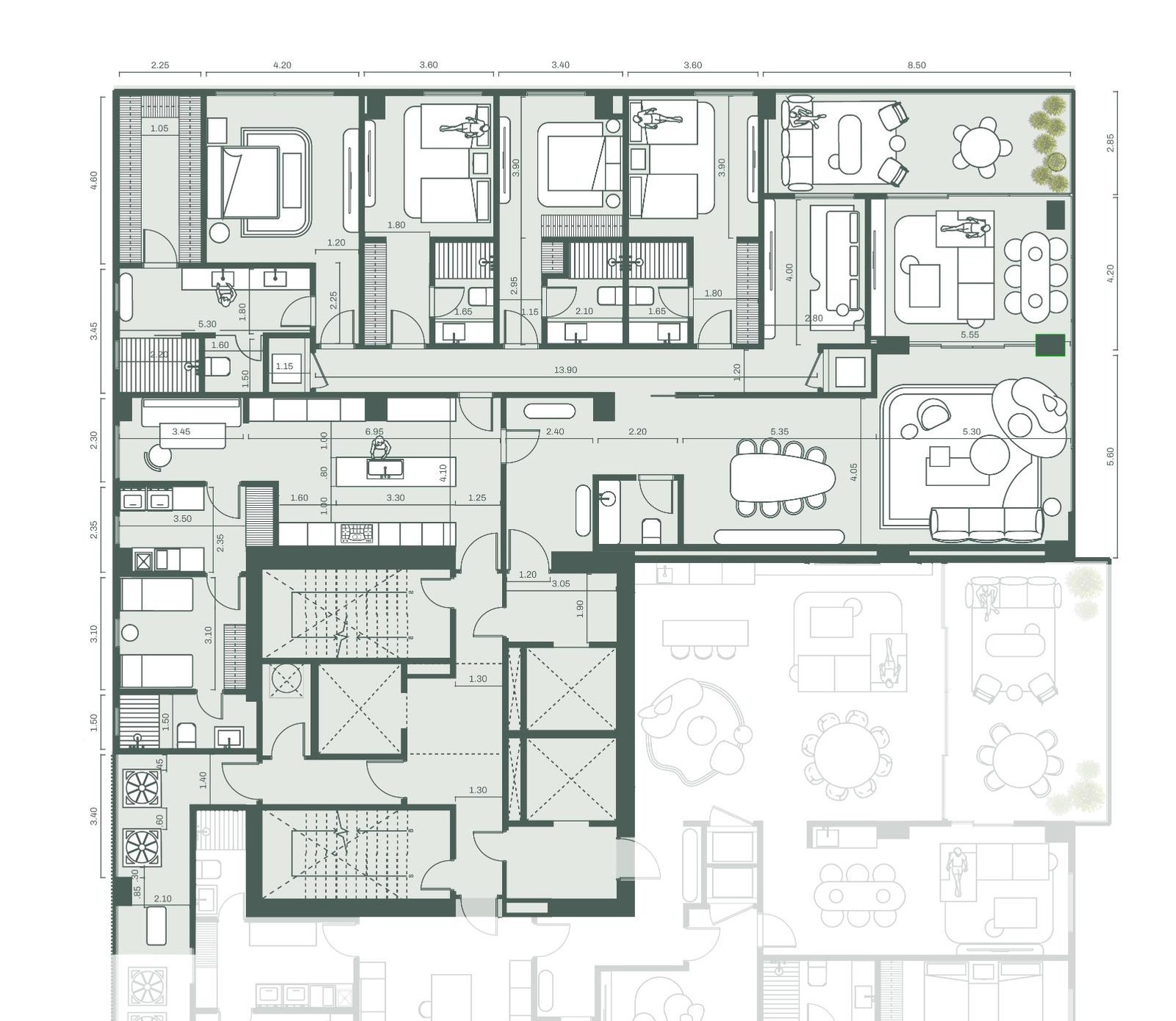 El Modelo A ofrece una distribución inteligente que aprovecha cada espacio, creando ambientes cómodos y bien definidos. Ideal para familias que buscan amplitud, privacidad y una relación constante con el paisaje que rodea Santa María.