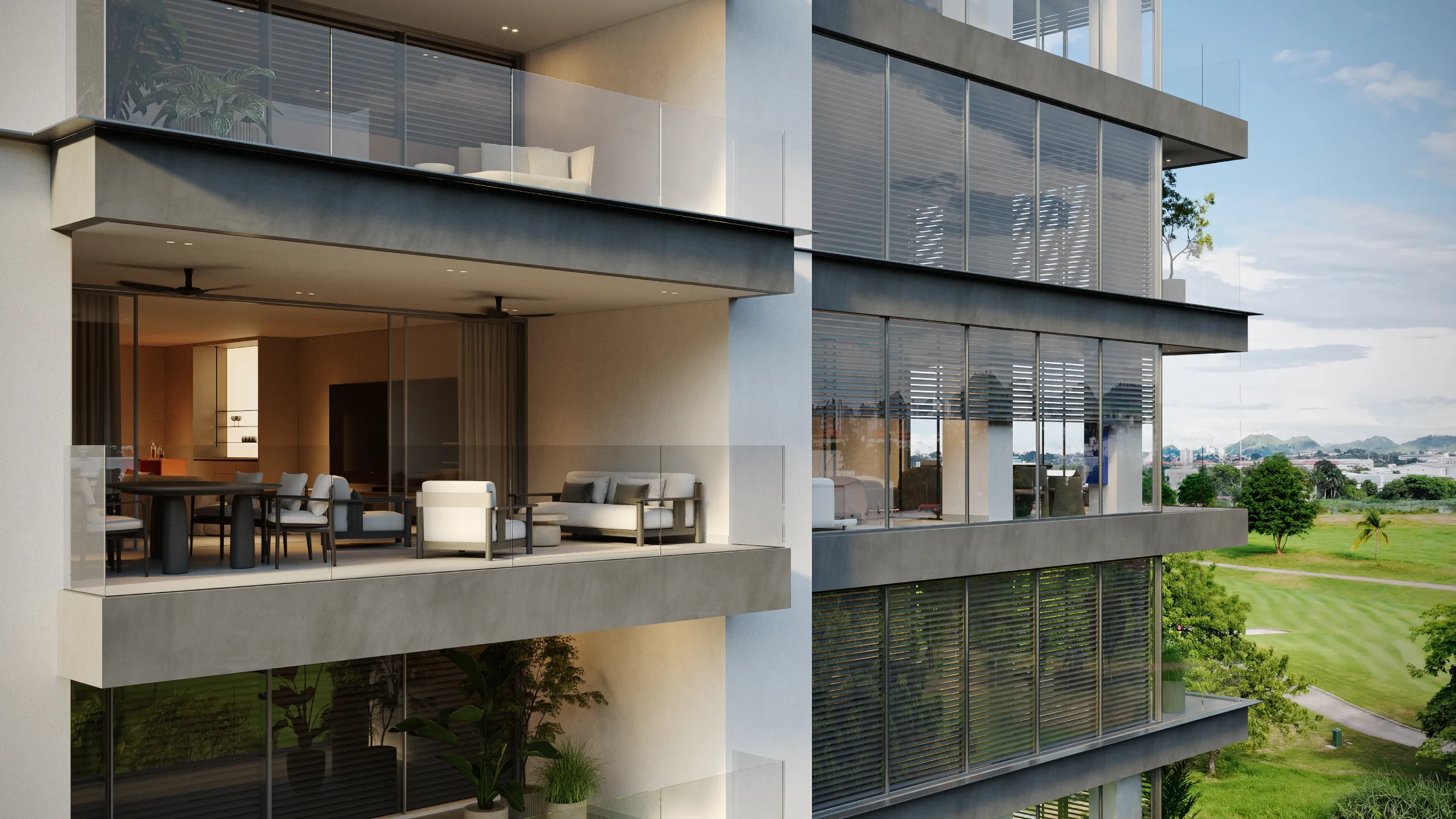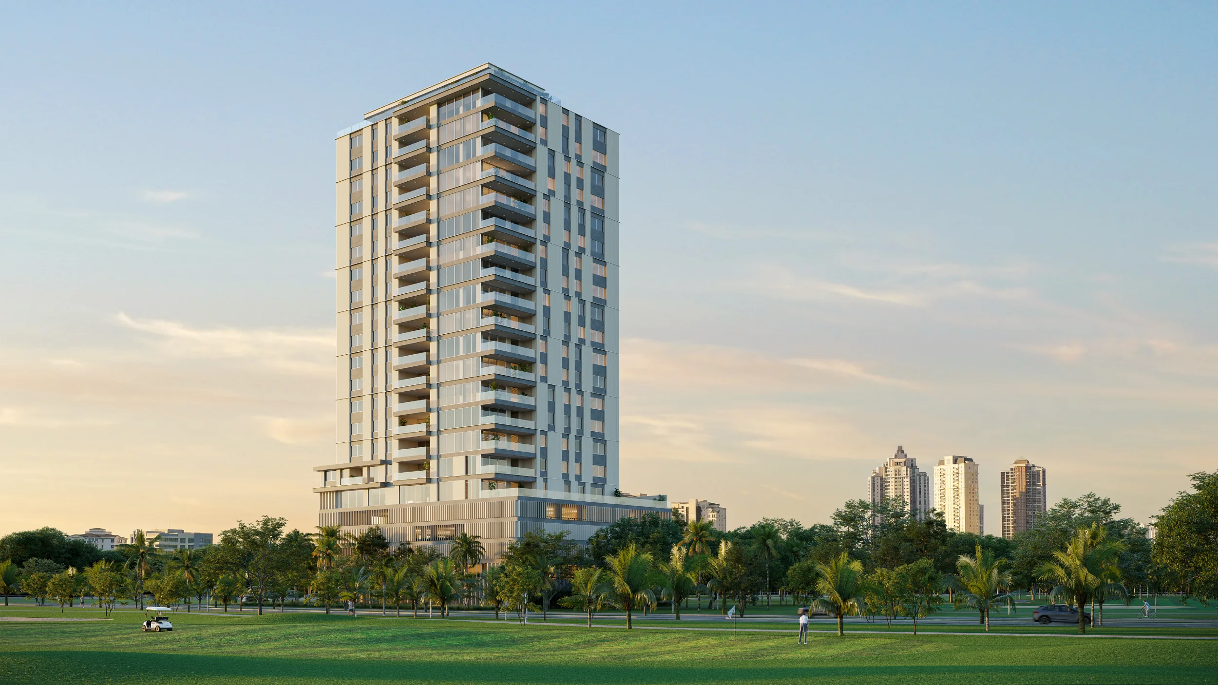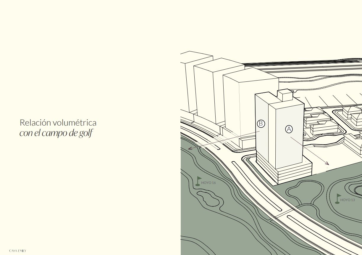 La localización privilegiada del lote dentro del complejo produce visuales destacadas desde la vía principal y desde múltiples puntos del campo de golf.