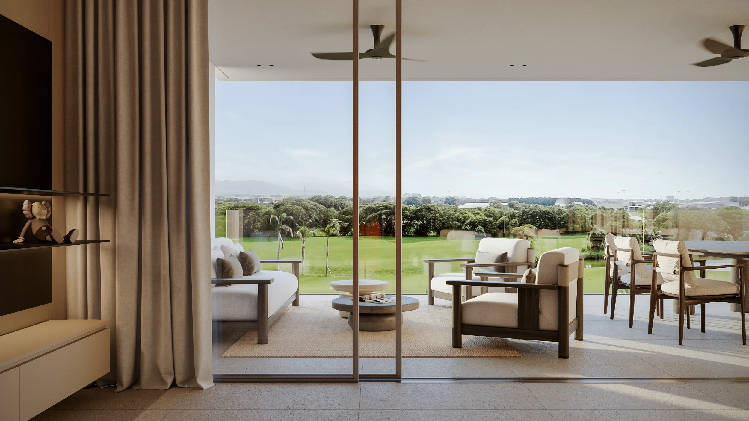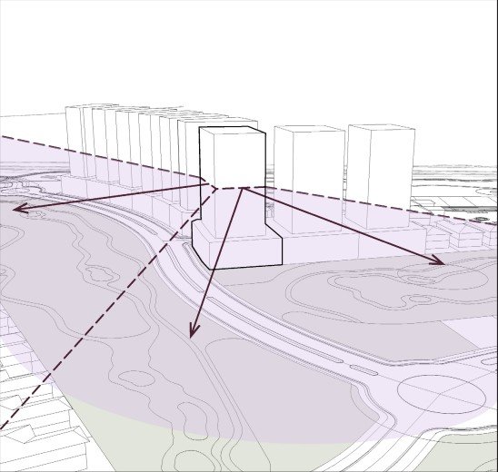 Desde el proyecto se destacan tres ejes importantes con excelentes vistas hacia los grandes espacios ajardinados sin interrupción.
