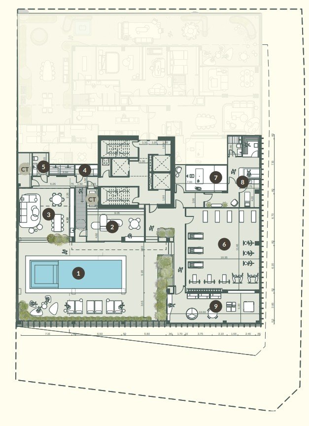 piscina, gimnasio, wellness area, salón multiuso, kids playground, bbq & lounge, simulador de golf